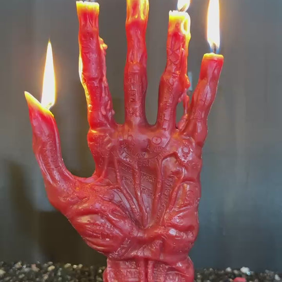 Reignite the fire — with this ritual red candle in the shape of a hand.